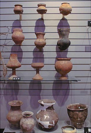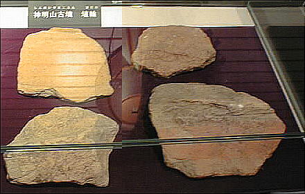複合遺跡。中国を起源とする弥生時代の土製の笛や、籾殻の跡の残る土器など、この地域に暮らしていた古代人の暮らしを