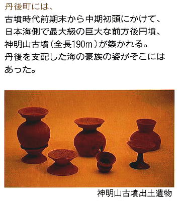 この古墳が築かれた当時この一帯は入江で、すぐそばに港があったと推定され、古代丹後の王たちは、農耕よりも海上交易