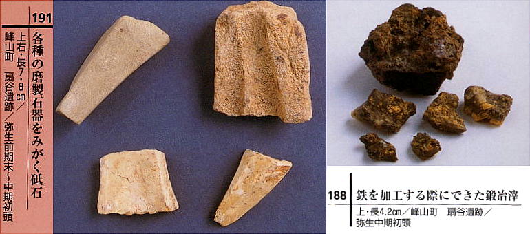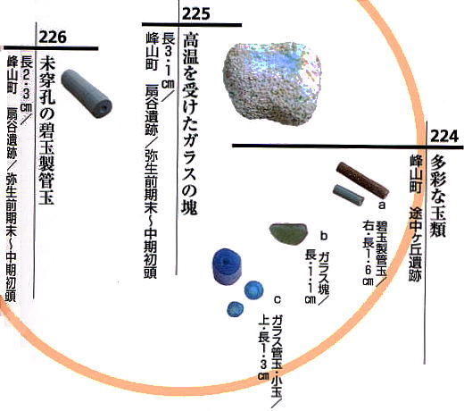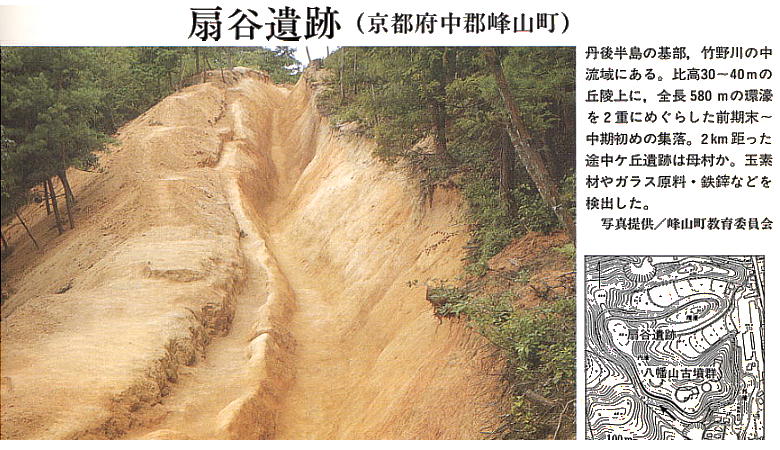 扇谷遺跡の環濠からは、丹後の弥生時代を象徴するような、「鉄」「玉」「ガラス」が出土している。同じく丹後の弥生の