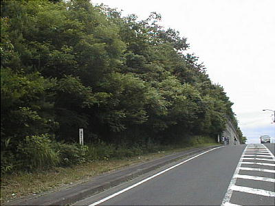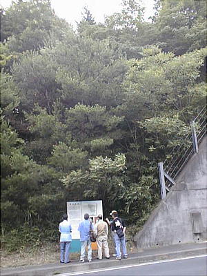下の写真で、道路の左側を環濠が二重に巡っていた。標識の立っている辺りの少し先の方、ちょうど車が移っている辺りが