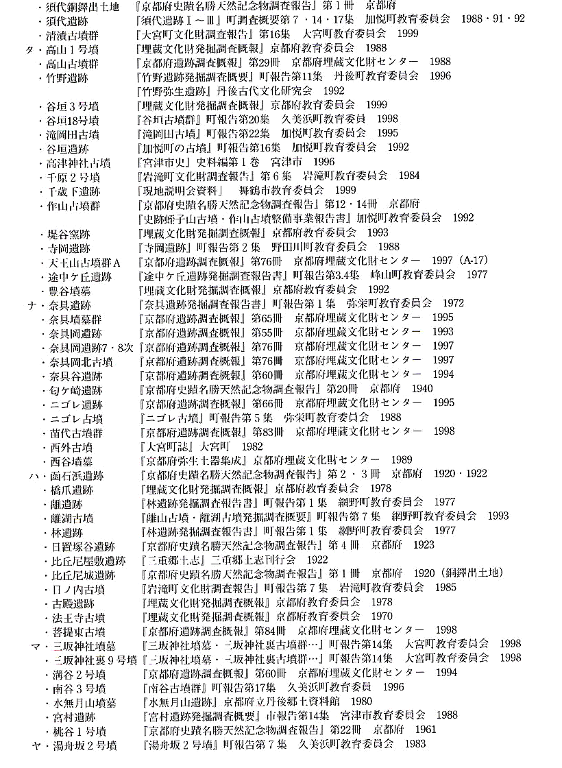 今回参考にしたのは以上のような出版物であるが、丹後半島の遺跡に関しては、他にも以下のような発掘調査報告書がある。