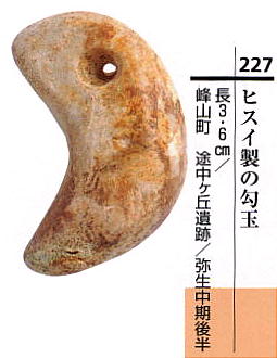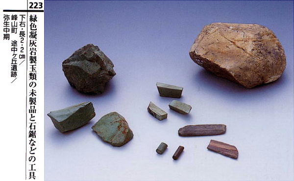 があり、玉造りの原料石や半加工品、ヤスリ、鉄斧などが見つかっている。奈具岡遺跡と並んで玉造りの工房跡と見られる