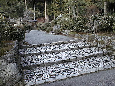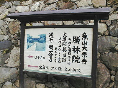 バス停から10分あまり。三千院の石垣、山門を横目で見てまっすぐ行くと突き当たりが「勝林院」で、その手前右手が御陵である。