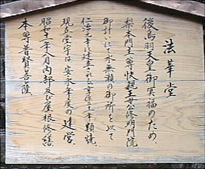 京都に持ち帰り、この大原西林院に安置した。後鳥羽天皇は多芸で詩歌にも優れ、「新古今和歌集」を勅撰している。