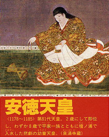 したとき、清盛の妻の二位の尼(安徳の祖母)に抱かれて入水した。