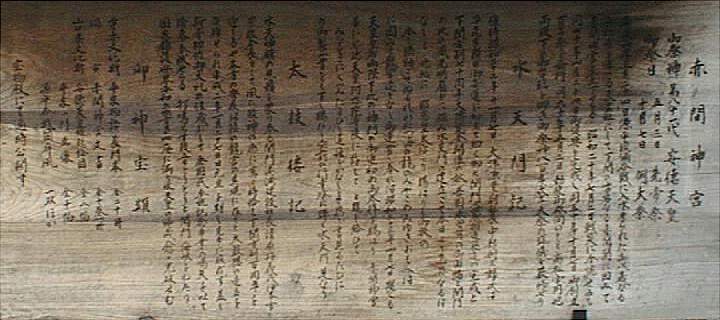 この神社は,帝の遺体が流れ着いたという伝説をもとにしているが、建久2年(1191)に安徳天皇の慰霊の為に建立された