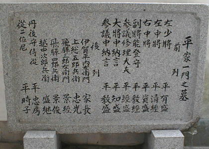 境内には「平家一門の墓」もある。著名な一門の将が葬られているが、ここに埋められているわけではない。