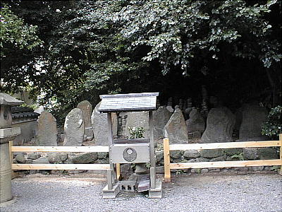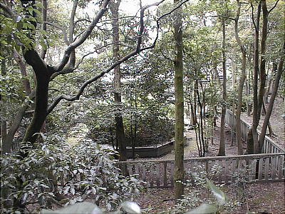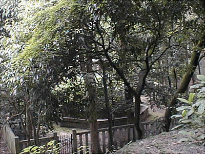 この平家一門の墓から、安徳陵の塚が見える(下)。この塚の背後が御陵正面である。