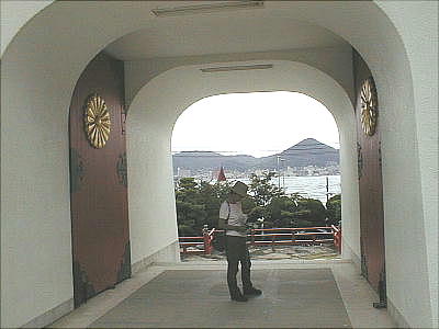 神門(水天門)の中に立つ。ここから眼前に壇ノ浦が見える。