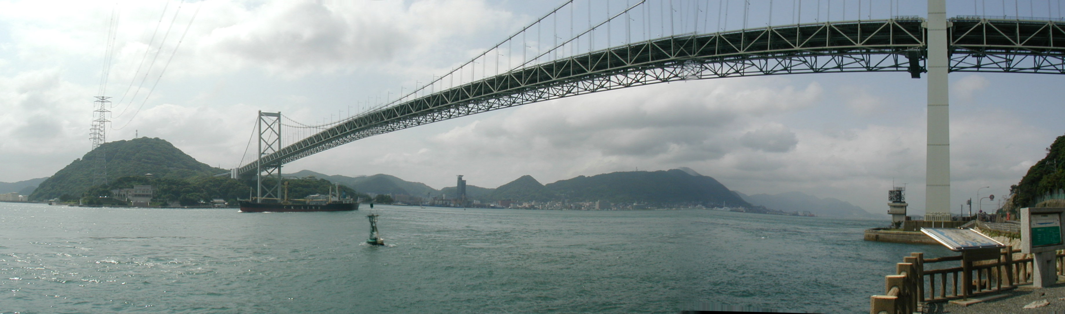 壇ノ浦を西側から見たところ。ひっきりなしに貨物船・商船が行き来する。