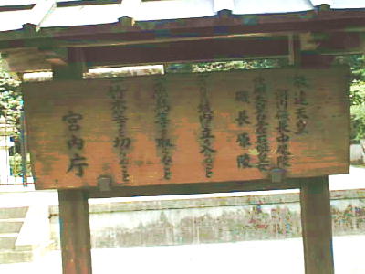 御陵: 河内磯長中尾陵(かうちのしながのなかのおのみささぎ:大阪府南河内郡太子町)