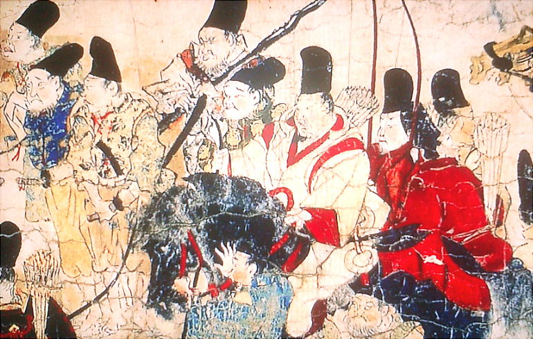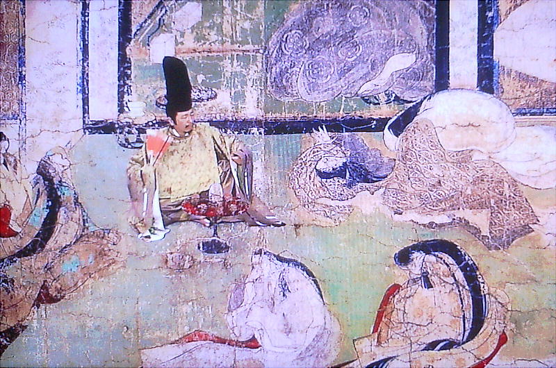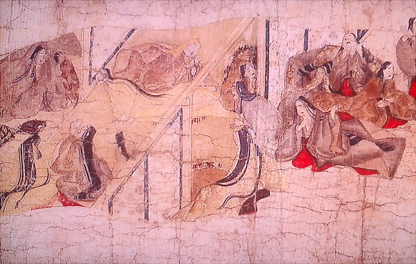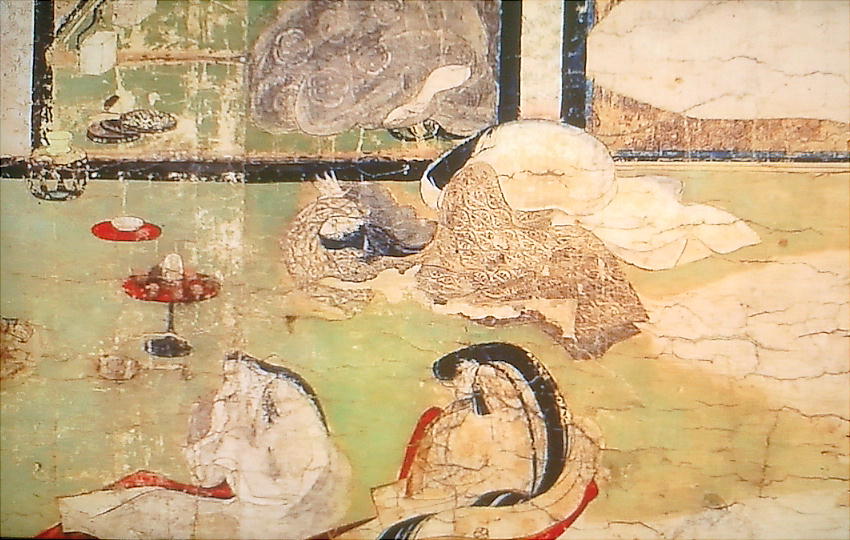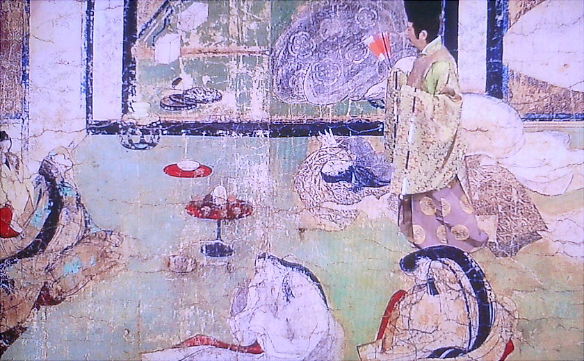 であるとか、この文様や束帯からみて三位以上の人物であるとか、人物の顔を塗るのに用いられている顔料が好奇な人にしか用いら