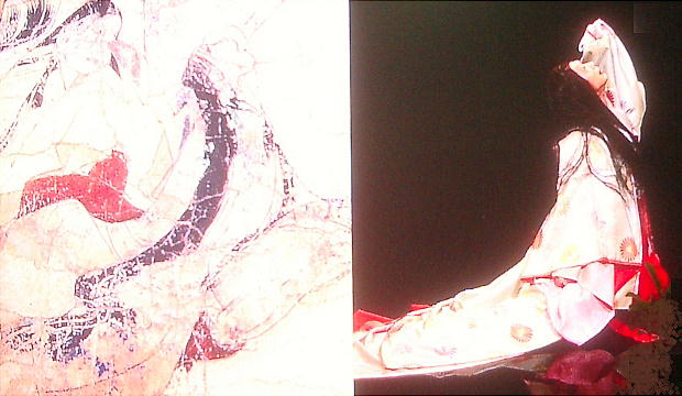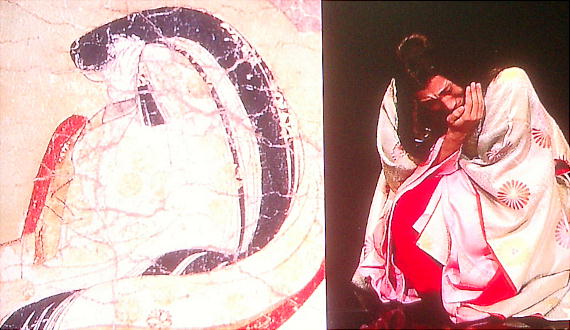 番組では、描かれた女房たちの泣く叫ぶ様を、現代のパントマイム演者たちに再現させていた。