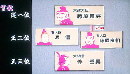 当時の勢力図は、藤原家は、良房が太政大臣、弟の良相が右大臣の地位にあり、良房の養子で次世代のホープ藤原基経はまだ近衛