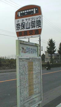 近鉄奈良駅からバスに乗って(乗り場は通常のバス乗り場からは一寸離れている)、「奈保山御陵」で降りる。15分ほど。