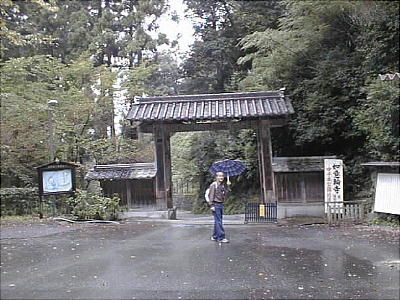 吉野水分神社の脇から山道を降りて如意輪寺へ下る。雨の中、クリを拾い、すすきを刈って、気持ちのいい山道を歩く。