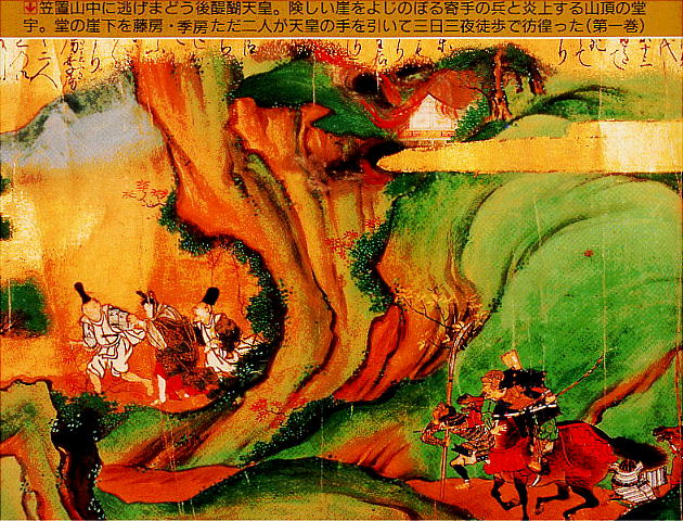 の後も一貫していた。最初の幕府討伐計画は、計画が事前に漏れて挫折する(正中の変)。元徳3・元弘元年(1331)、再度の倒幕計画も鎌倉