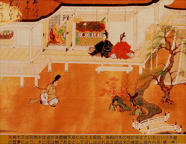 皇の院宣(いんぜん)を手に入れた尊氏は、反後醍醐帝の武士達を従え、光厳天皇をたてて京に入った。理想主義と絶対君主制に裏打ちさ