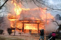 メートルが全焼し、約1時間15分後に鎮火した。けが人はなかった。出火当時、隣の庫裏にいた住職が火事に気付き、