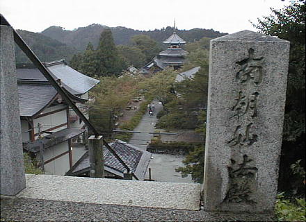 今は南朝妙法殿が建っている所で、ここが南朝57年、4代の天皇が政権回復を目論んだ南朝の皇宮跡である。