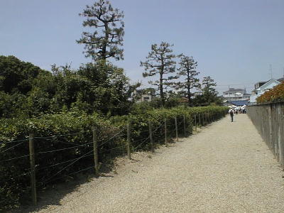 あたるので、表側へ行こうとするとぐるりと御陵を廻っていく事になり、10分ほどかかる。堀はあるが水が無く空堀である。この周