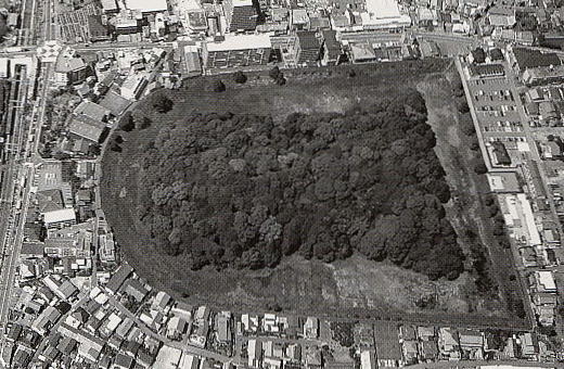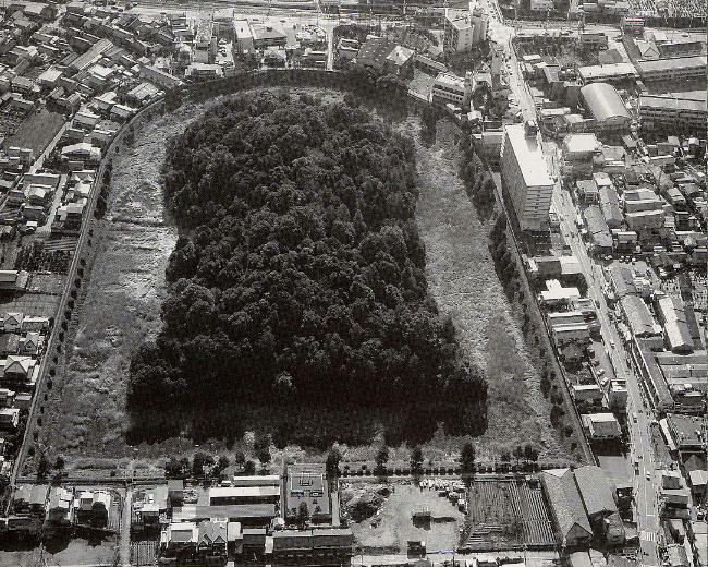 上空から見た市ノ山古墳(允恭天皇陵)。空堀なのがよく分かる。