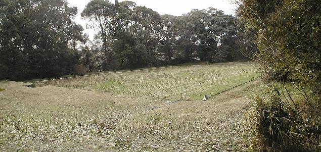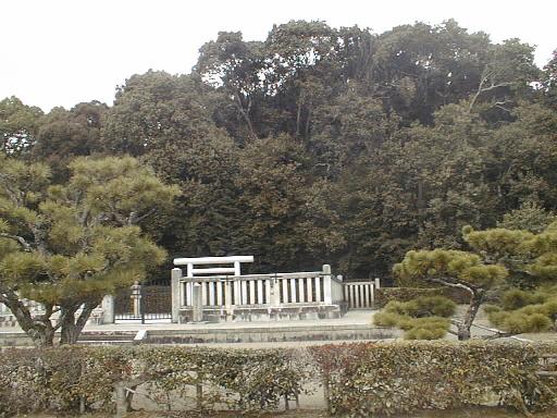 この天皇陵は自然地形を利用して築かれた前方後円墳だが、前方部は後になって付け足されたもののようである。一部周濠