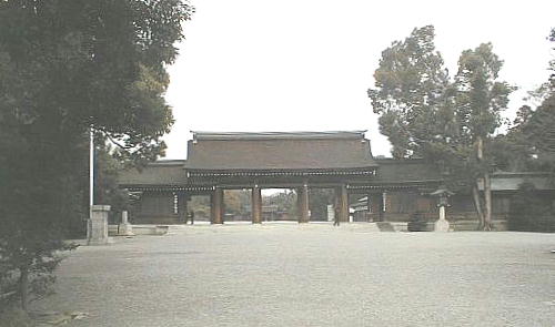 御陵の前の車道を5,6分歩くと左側に森が見え橿原神宮の西入り口へ来る。ここを入って行くと、やがて右側に深田池が見え