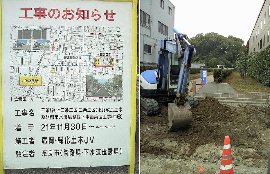 仕事で奈良へ行った。帰りにココを通ったら御陵前を全面的に掘り返していた。この商店街は道幅を広げるらしい。