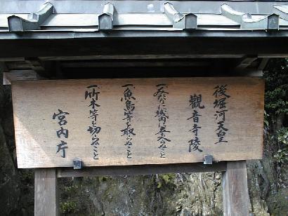 ポツンと歴代から離れた場所で眠っている。後堀河天皇の息子四条天皇は、崩御に際して父の墓の近くに葬ってくれと遺旨する。それ
