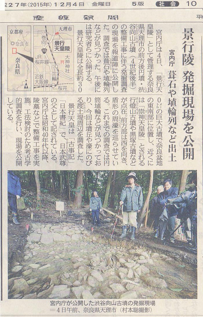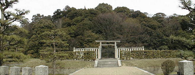 陵墓: 山辺道上陵(やまのべのみちのえのみささぎ:奈良県天理市渋谷町:渋谷向山(しぶたにむかいやま)古墳)