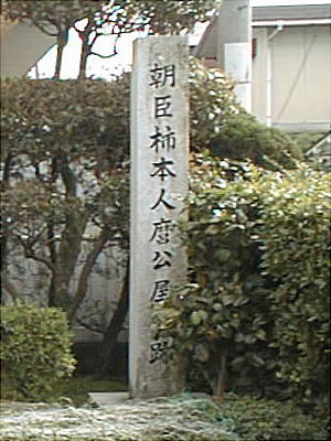 一画になんと柿本人麻呂の屋敷跡があった。「げーっ、ほんまかいな。」と思ったが、ちゃんと石碑まで建っていたので一