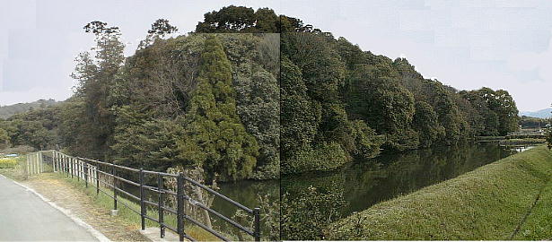 井市の境付近にある前方後円墳で、現在景行天皇陵という事になっているが、一説によるとこの天皇は存在を疑われている。