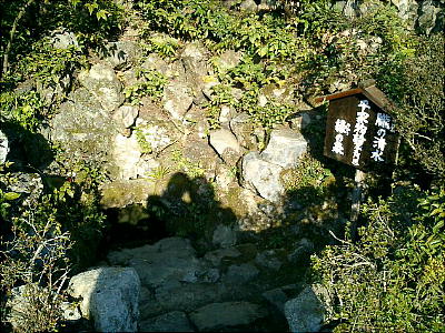 途中にあった「朧(おぼろ)の清水」という小さな湧き水。建礼門院が京都から寂光院へ移ってきた際、この清水のあたりで日が暮