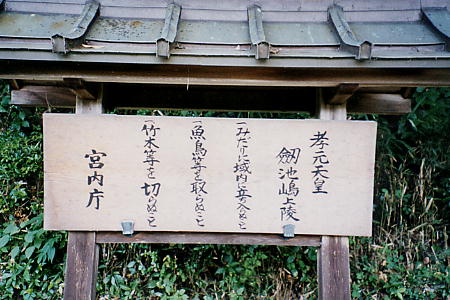 陵墓: 剣池嶋上陵(つるぎのいけのしまのうえのみささぎ:奈良県橿原市石川町)