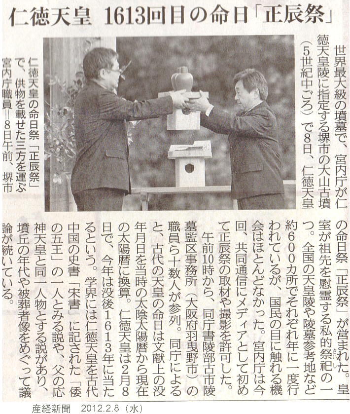 <第16代仁徳(にんとく)天皇> 異称: 大鷦鷯天皇(おおさざきのすめらみこと:日本書紀) 生没年: 神功皇后摂政57年 〜 仁徳天皇87年 143歳(古事記では83歳) 在位期間 応神天皇41年+3年(仁徳元年) 〜 仁徳天皇87年 父: 応神天皇 第四子 母: 品蛇真若王(ほむだまわかおう)の娘、仲姫(なかつひめ:五百城入彦(いおきいりひこ)皇子の孫) 皇后: 磐之媛命(いわのひめのみこと)、八田皇女(やたひめ) 皇妃: 日向髪長媛(ひむかのかみながひめ) 皇子皇女: 大兄去来穂別天皇(おおえのいざほわけのすめらみこと:履中天皇)、住吉仲(すみのえのなかつ)皇子、 瑞歯別天皇(みつはわけのすめらみこと:反正天皇)、 雄朝津間稚子宿禰天皇(おあさづまわくごのすくねのみこと:允恭天皇)、大草香皇子 宮: 難波高津宮(なにわたかつのみや:現大阪市中央区) 陵墓: 百舌鳥耳原仲陵(もずのみみはらのなかのみささぎ:大阪府堺市大仙町)