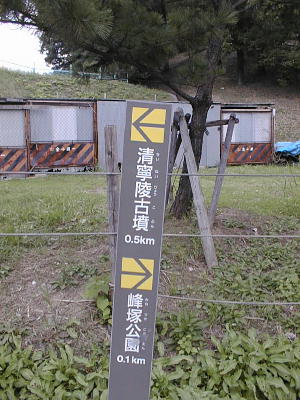 上左は峯塚古墳前の案内。峯塚古墳の前を真っ直ぐ5分程行くと道筋に清寧陵がある。
