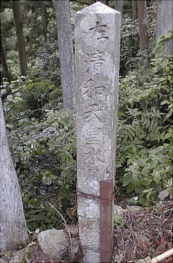 水尾(みずお)の集落に入ってしばらくしたら、道路脇に清和天皇陵への立て札があった。畑の中へ入っていく細い道が見えたので、