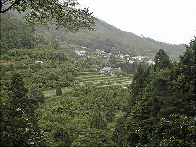 小山の中腹から見た水尾の集落。下右の写真、真ん中あたりでタクシーに待って貰っていた。運転手さんに申し訳ないなぁと思いなが