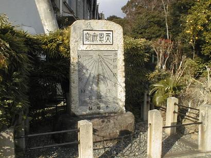 御陵の前に石の「日時計」があった。古くてなんかいわれのありそうな日時計だったが何も案内がないので由来は不明。影で時間を計るようになっているようだった。