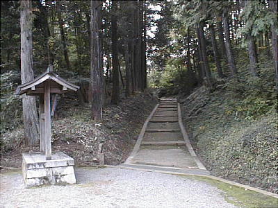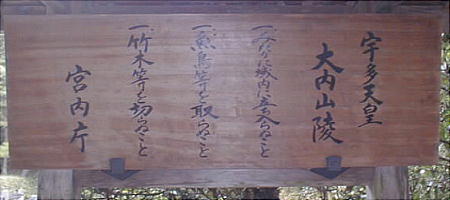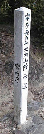「参稜道」という道標が立っていて、はてどっちに行ったものかと思ったが、一寸左を見ると、木の陰に宮内庁の看板が見えて