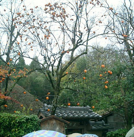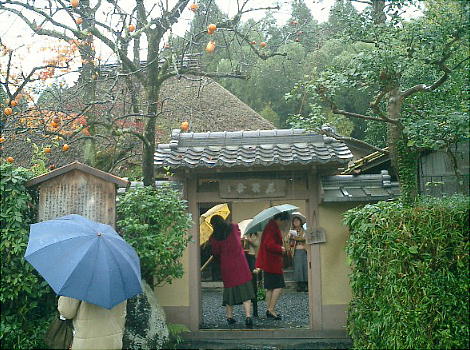 京都嵯峨野、落柿舎のとなりで雨にけぶる有智子内親王墓。