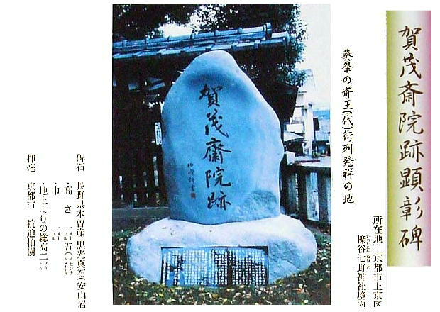 残っている。境内には賀茂斎院跡の顕彰碑と解説板がある。「斎王」といえば伊勢の斎宮も、賀茂の斎院もともに