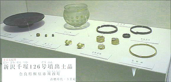 奈良盆地南の越智岡丘陵上に分布する590余基の古墳群中の1基。126号墳は 16x22mの長方形状の墳丘を持ち、刳り抜き式木棺を内部主体とする。金製垂飾付耳飾、金製方形板、金製歩揺、金銀製指輪、ガラス碗・皿、漆盤、青銅製熨斗などの大陸色豊かな遺物が顕著である。