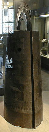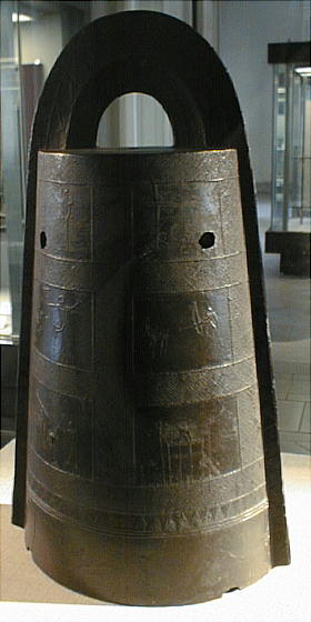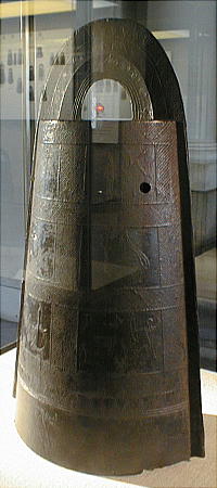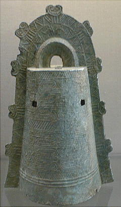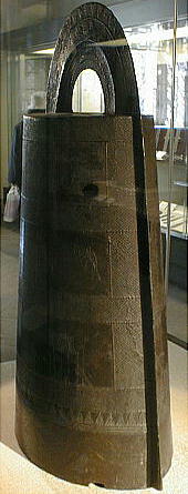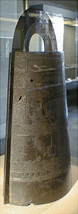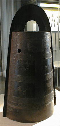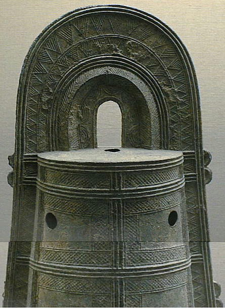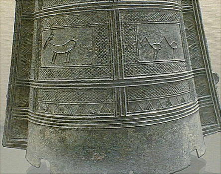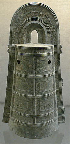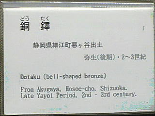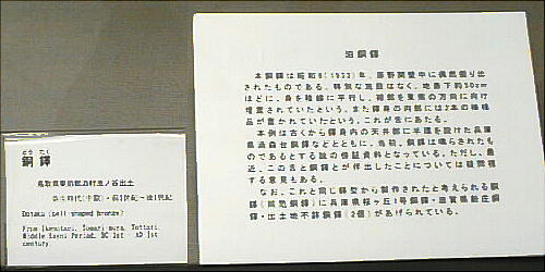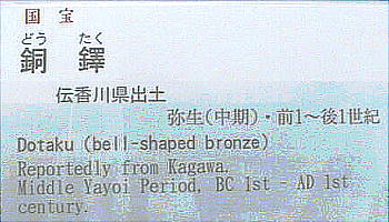 銅鐸 ![]() ![]() 「銅鐸」 滋賀県野洲郡小篠原 明治14(1881)年発見 高134.7cm 弥生時代後期 琵琶湖東岸の平野を見下ろす丘陵の突端から明治 14(1881)年に 14個、昭和 37(1962)年に 10個の銅鐸が発見された。銅鐸の多数埋納とともに、後者では製作された年代も工人も異なる大・中・小の3個の銅鐸を入れ子にしたものが3組含まれていたことから古くから特に注目されてきたものである。集められた銅鐸が、ムラムラの統合を意味するという解釈は、こうした発見から生まれたものである。なお1号銅鐸は総高・重量ともに現存する最大の銅鐸である。 滋賀県野洲郡「銅鐸博物館」を訪ねる。 ![]() ![]() ![]() ![]() ![]() ![]() ![]() ![]() ![]() ![]() ![]() ![]() ![]() ![]() ![]() ![]() ![]() ![]() ![]() 「銅鐸」 伝香川県 高 42,7cm 弥生時代中期 この銅鐸は桜ヶ丘4・5号銅鐸(*)とともに、巧みに表現された様々な原始絵画を有した銅鐸として、古くから注目されてきたものである。特に、杵で臼を突く人物や高床式の倉庫を思わせる建物の表現は、銅鐸が農耕祭祀と深い関わりを持った祭器であるという解釈の重要な拠り所となっている。また桜ヶ丘4/5号銅鐸との比較研究により、これらの3つの銅鐸は、同じ工人ないし工房で造られた可能性がきわめて高いことも判明している。 (*)兵庫県神戸市桜ヶ丘町 昭和 39(1964)年調査 弥生時代中期 神戸市立博物館蔵 ![]() 邪馬台国大研究ホームページ / 東京国立博物館 / 銅鐸 |