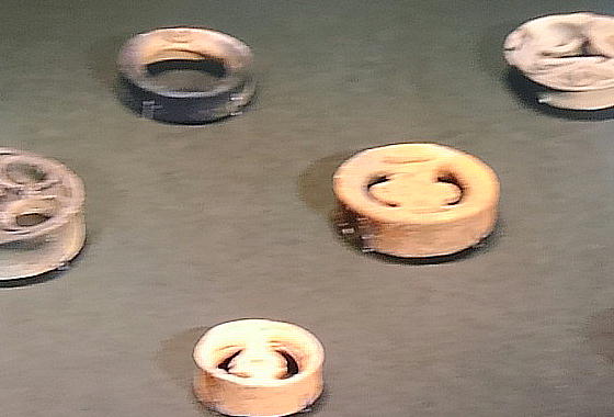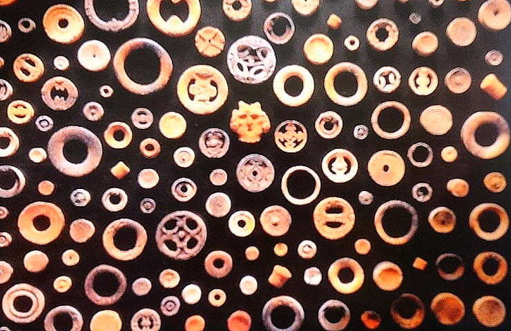花弁にもたとえられる優美な透し彫りをもつ土製の耳飾。耳飾の多くは女性が身に着けた