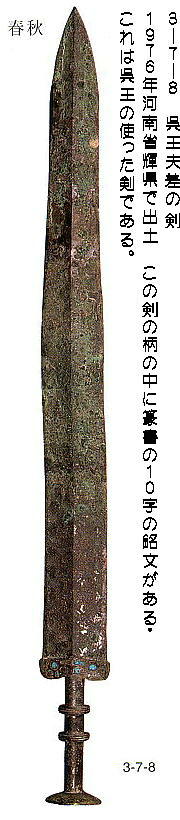 上右の銅剣は、北京の「中国歴史博物館」にある銅剣である。左側の中寒水遺跡出土の「桃氏剣(とうしのけん)」と