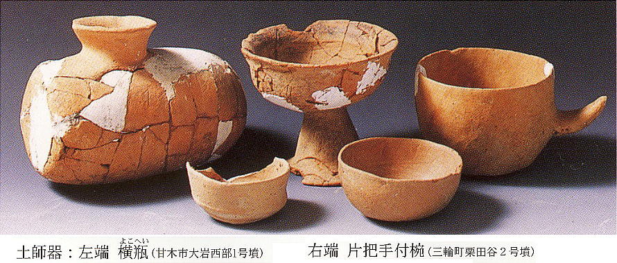 け入れていたことがわかる。三輪町「栗田遺跡」D地区(旭の下)では前期末の石製把頭飾がみつかっており、これは